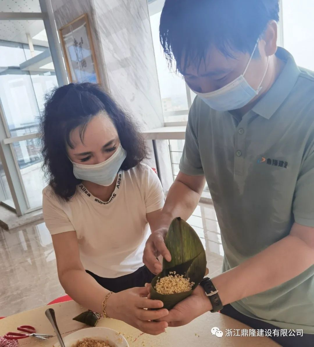 端午節還沒到,在鼎隆大廈已經飄起了粽葉香。聞著香味尋去,原來是鼎隆工會在組織員工開展“濃情五月天 歡樂度端午”主題包粽子活動。